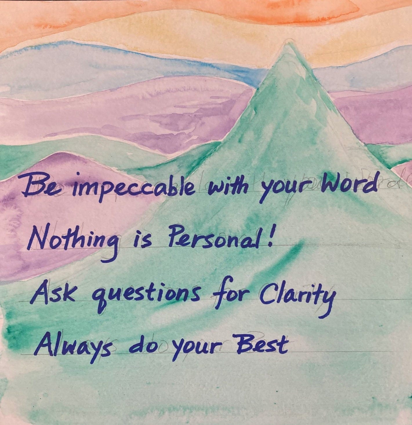My daughter-in-law, Aja, came over this week, and we chatted about her plans for a home-birth, and her thoughts about parenting. We sat at the dining room table, and while we talked we made little paintings with inspirational quotes, like the one pictured below (from “The Four Agreements,” by Don Miguel Ruiz). Aja is deep into her nesting-mode, with the baby due within the next few weeks. Their old farmhouse 9 miles down the road from me is still in the messy midst of major renovations, and I am helping her paint the kitchen in the hopes that it’s ready to use before the baby comes. They have been making all of their meals in a makeshift outdoor kitchen for months.