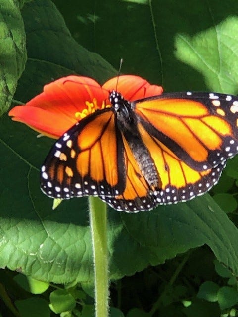 Presence is beauty. I took a momentary break from writing this blog-post to stand up and step out into the sunshine in my backyard. Our resident mockingbird was sharing its many beautiful songs from up on its favorite corner of our metal shed-roof, and a couple of large monarch butterflies flitted around me in the sunshine. A cool gentle breeze brushed across my face, and brought my neighbor’s melodic chimes to life. What an incredibly beautiful moment to behold! It filled me with pure and simple gratitude, which I brought back to my writing here, to share with you :).